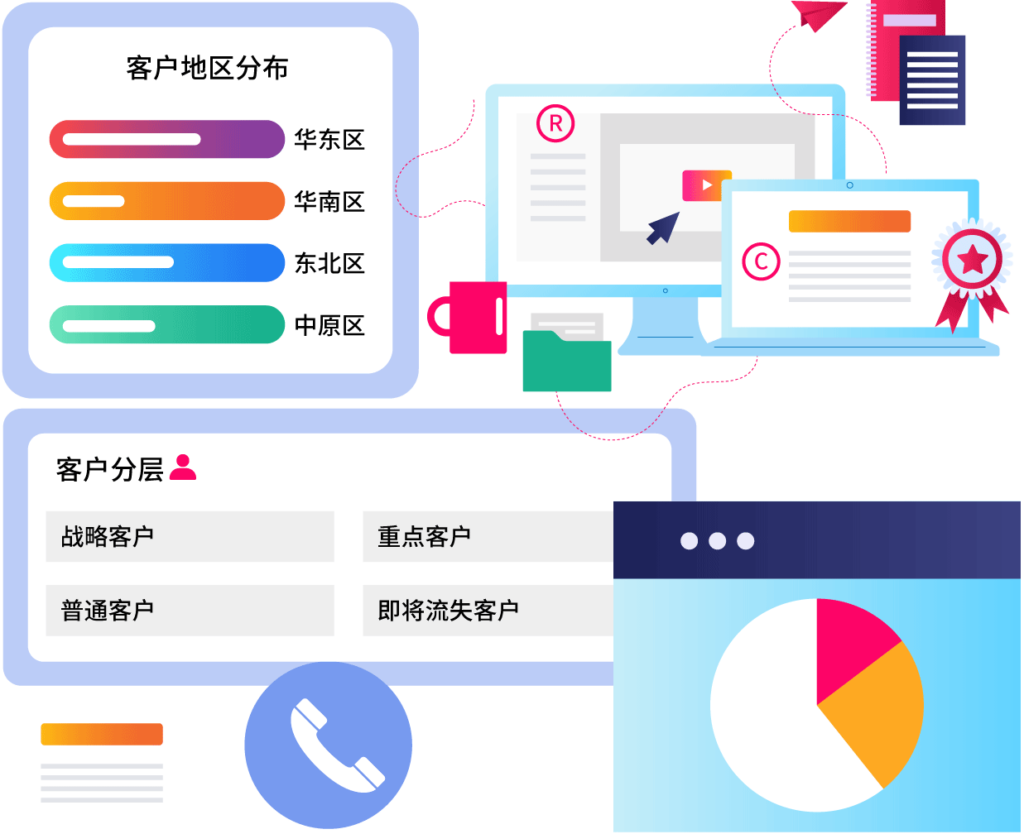 - 基礎報表:生成客戶行業分布、服務類型占比等基礎分析